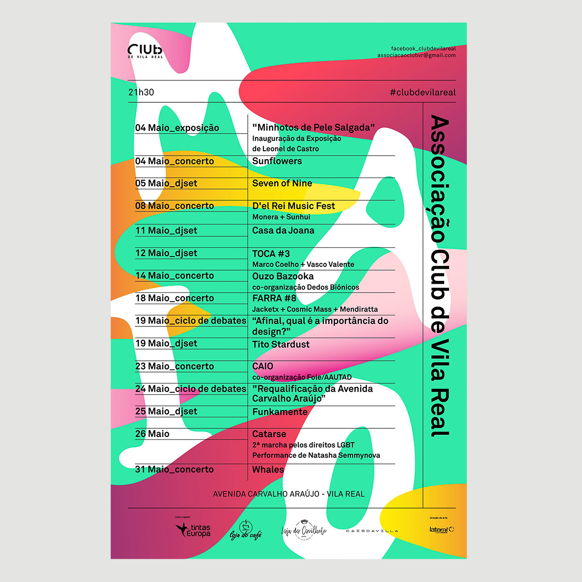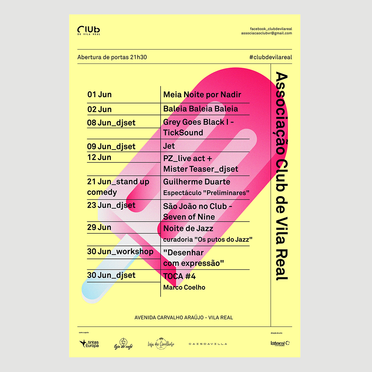 Series of posters for Club de Vila Real, part of an identity coordenation project for visual presentation and comunication of several cultural events, under the same visual system.
